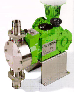 The metering pump is a positive displacement chemical dosing device with the ability to vary capacity manually or automatically as process conditions require. It features a high level of repetitive accuracy and is capable of pumping a wide range of chemicals including acids, bases, corrosive or viscous liquids and slurries.
